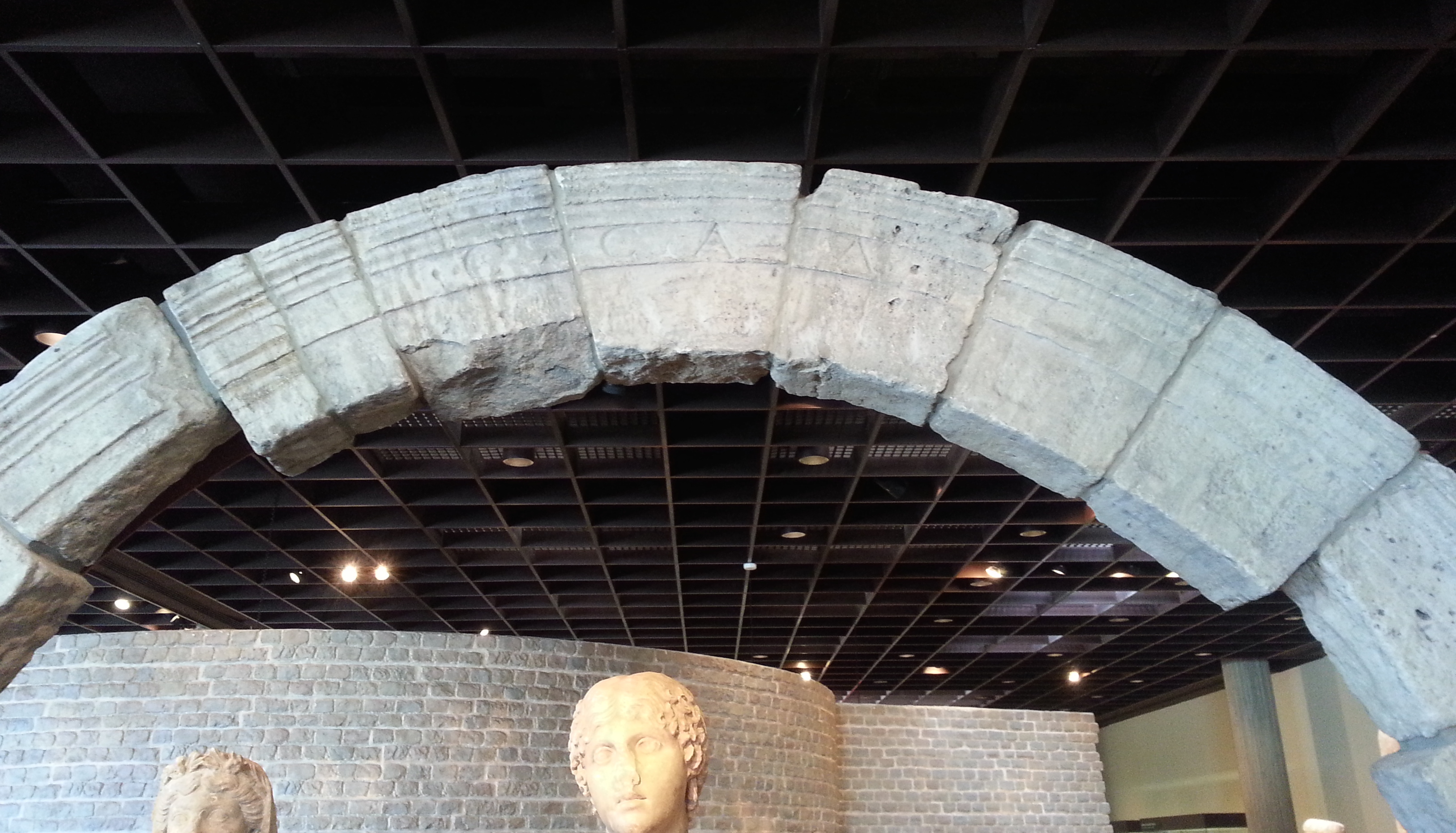 Roman city gate of the CCAA, imaginatively inscribed with … CCAA. Römisch-Germanisches Museum, Cologne. – Photo: PK, 2014.