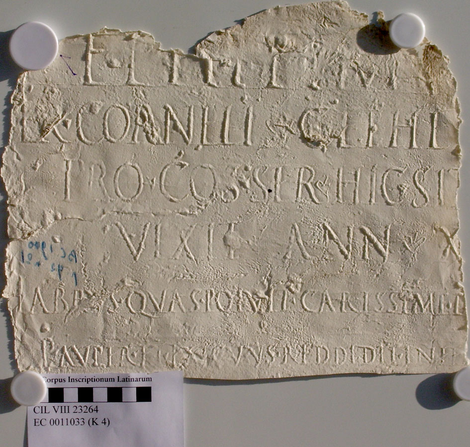- CIL VIII 7858 = VIII 19480 = ILAlg II 1.837 = CLE 114 (Constantine/Cirta, Numidia)