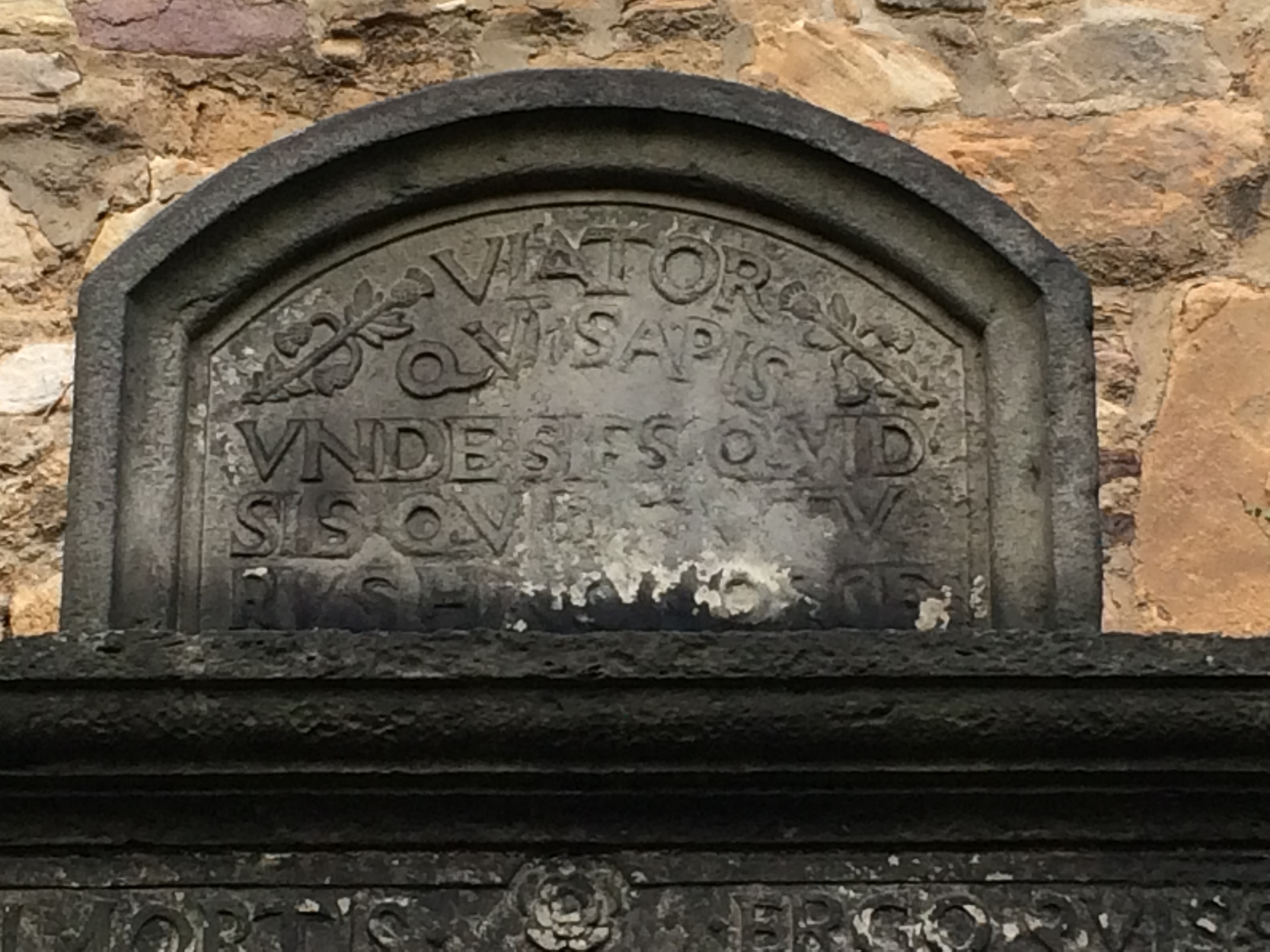 Viator | qui sapis | unde sis, quod | sis, quidque futu|rus sis, hinc nosce.